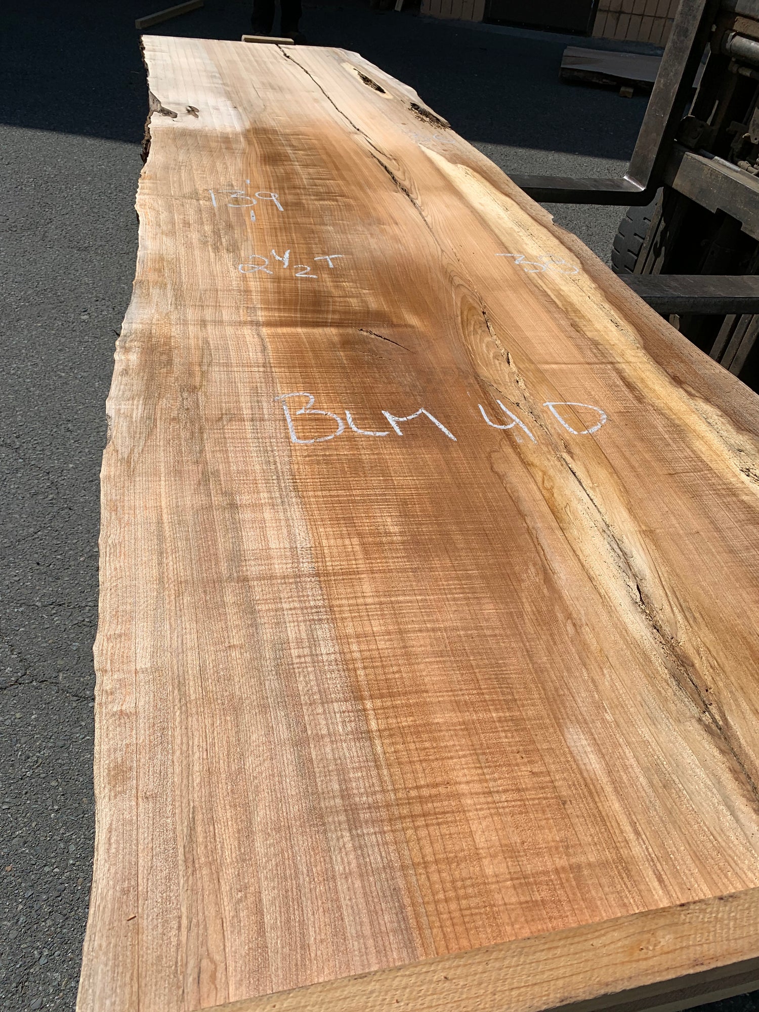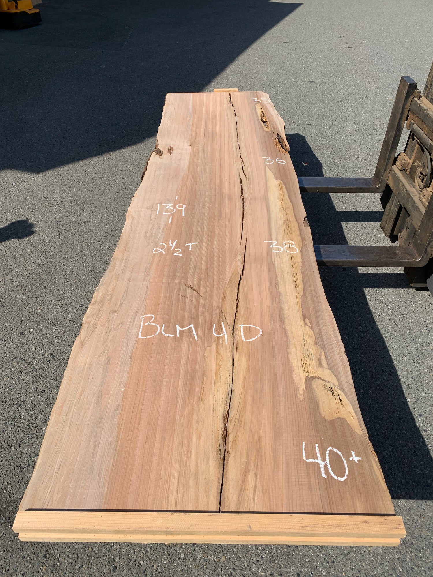 Measuring 2 1/2”thick with lots of visible curl ,soft spots and a large long crack down the middle . This slab has been CNC flattened and ready to work on