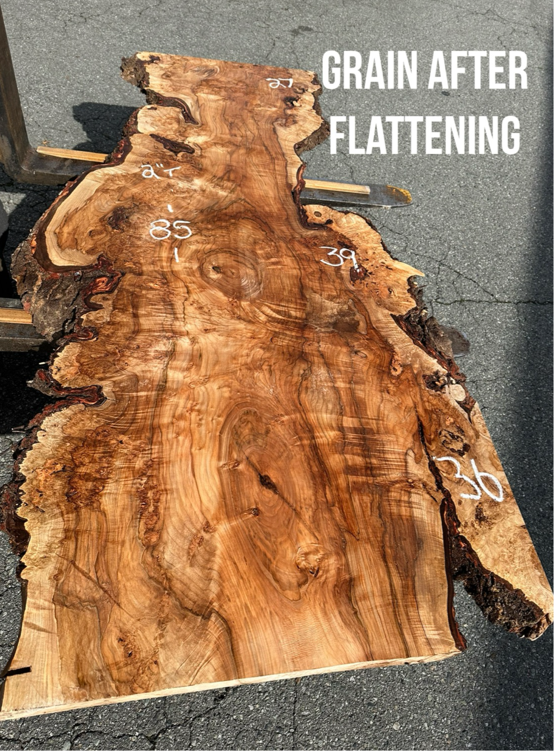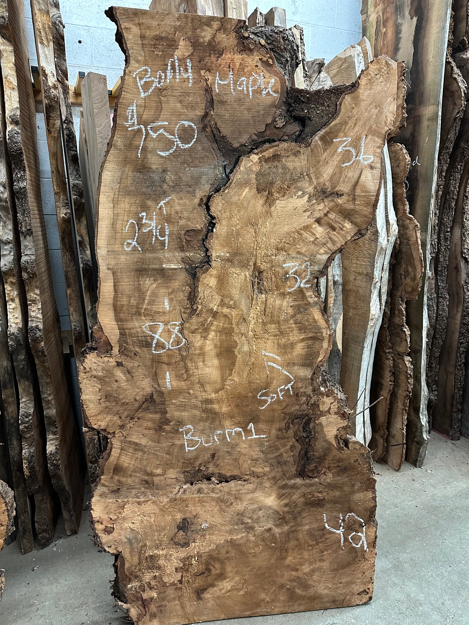 This slab has lots of visible curl , flame and pin grain throughout the piece.