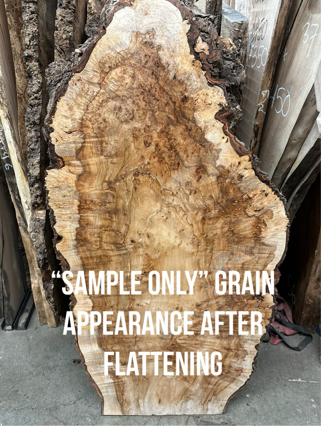 This slab has lots of visible curl , flame and pin grain throughout the piece.