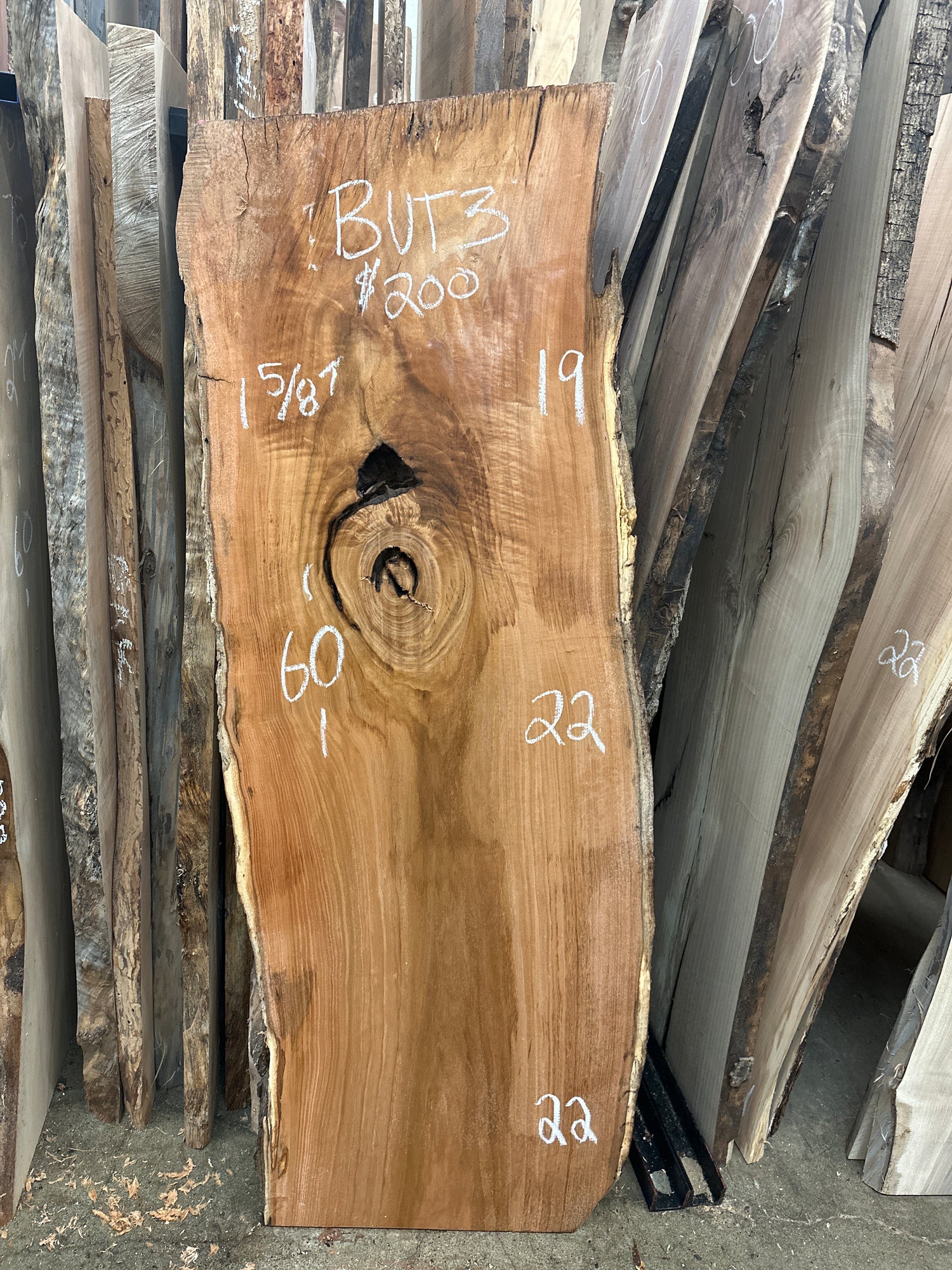 1 5/8”thick . This piece has some softer outer edges