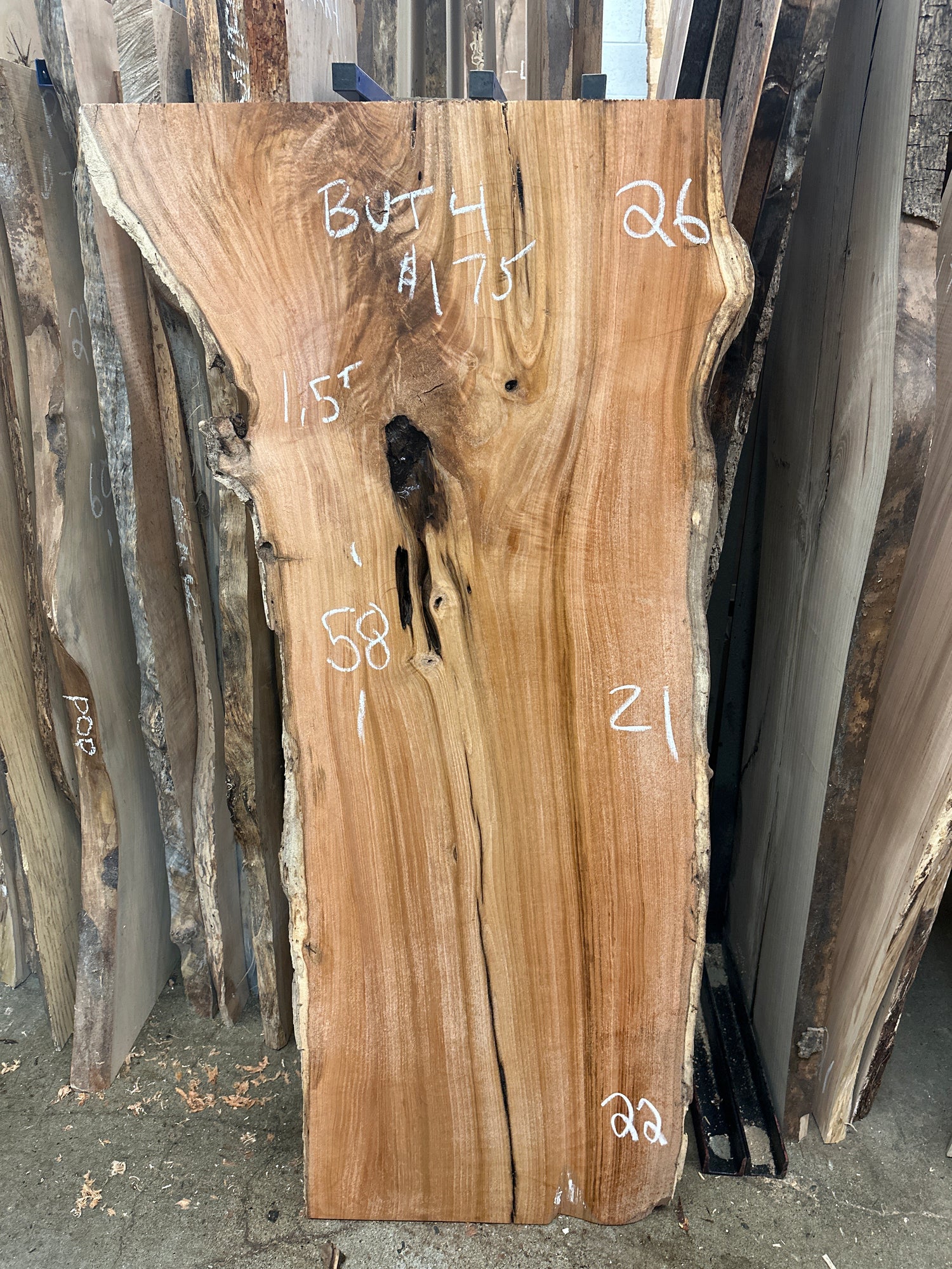 1.5” thick . This piece has some softer outer edges , surface cracks