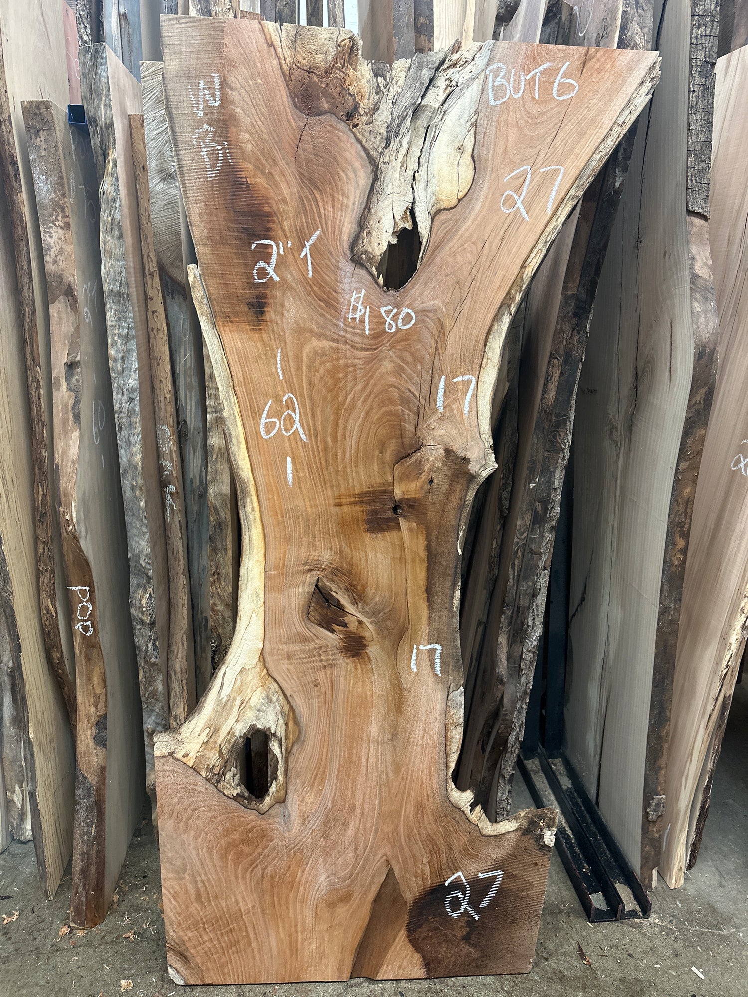 2” thick . This piece has some softer outer edges , surface cracks and pockets of rot
