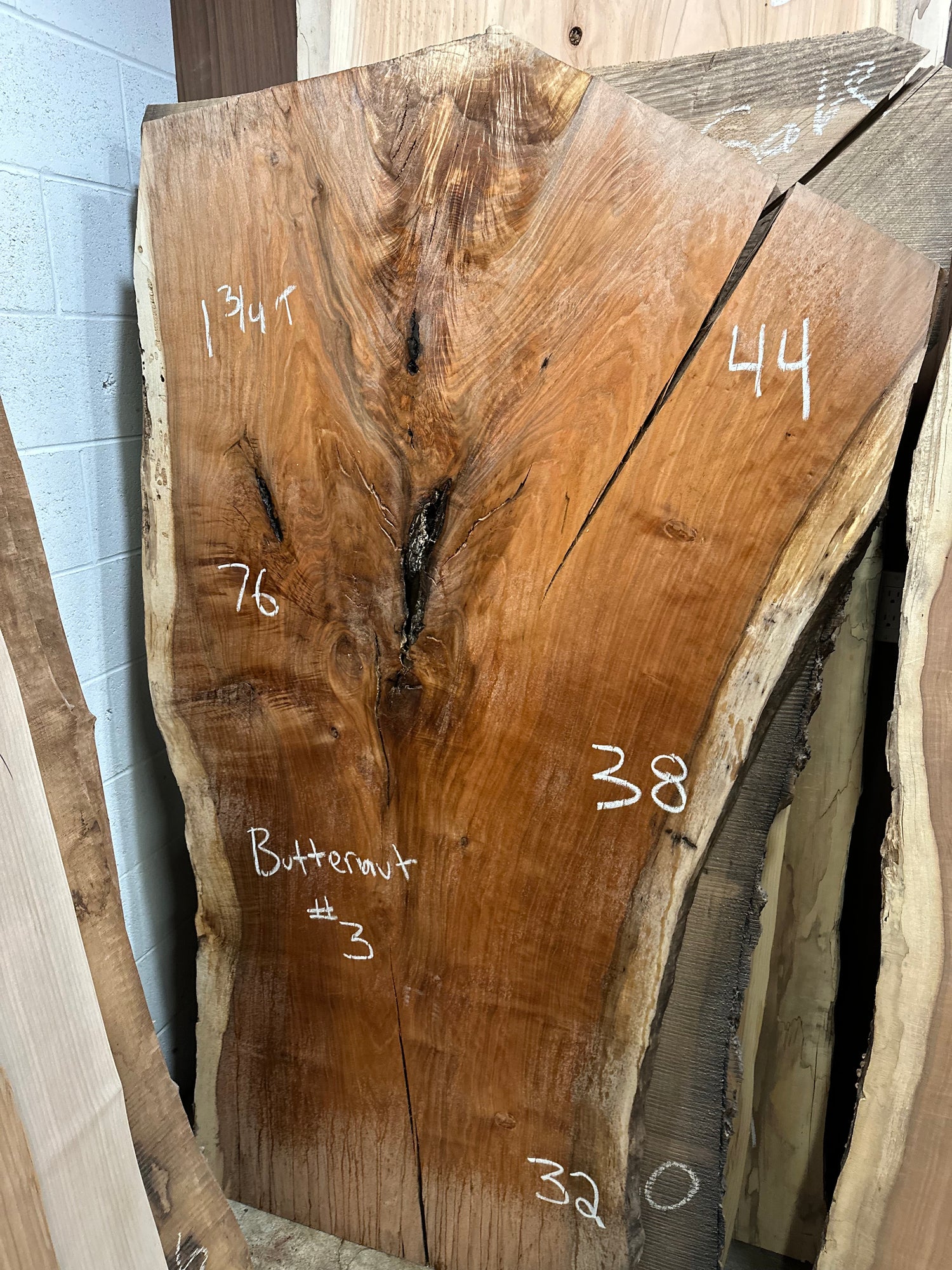 1.75” thick. Very nice crotch grain with will deep rich colours . This piece has been flattened