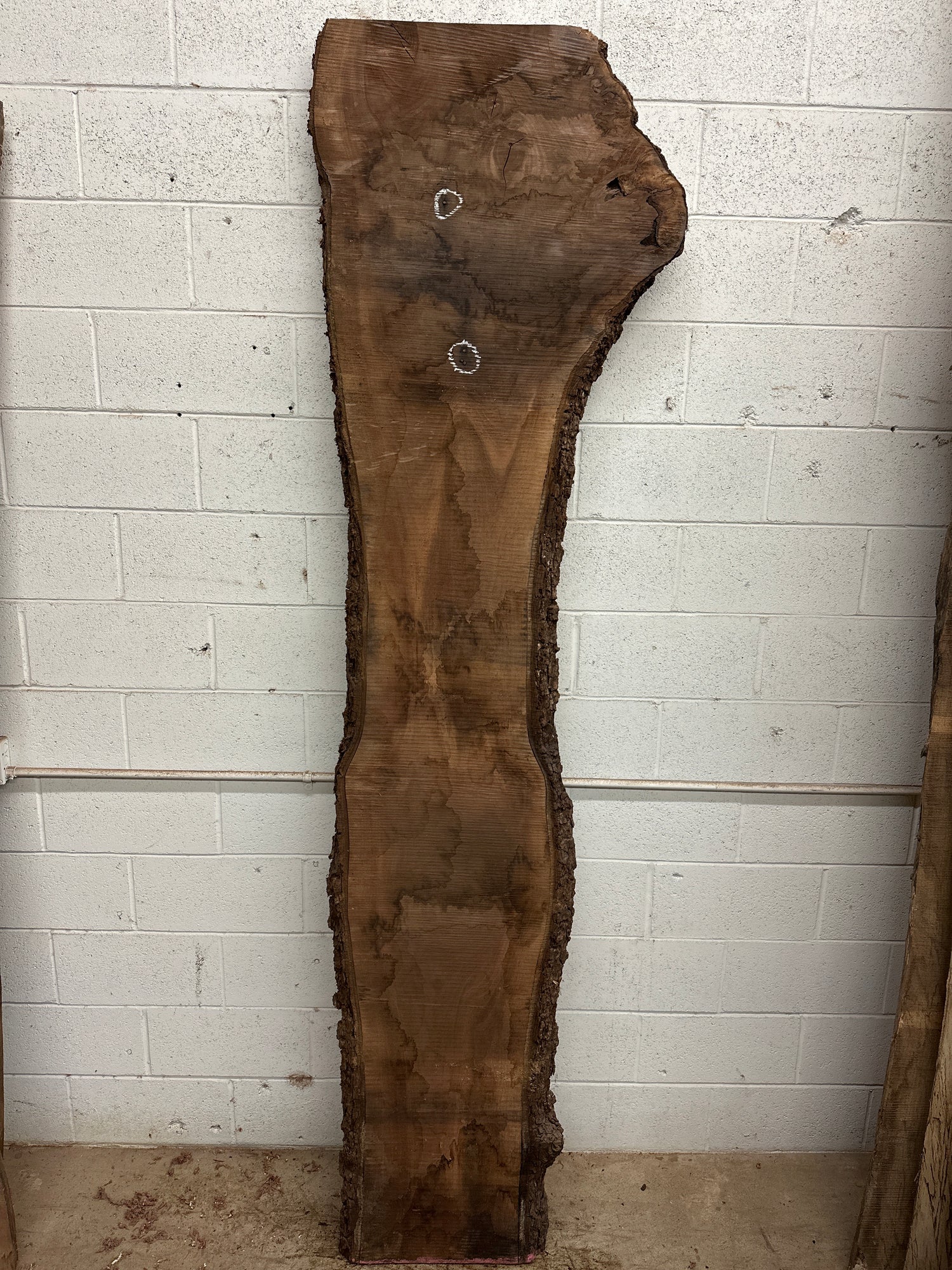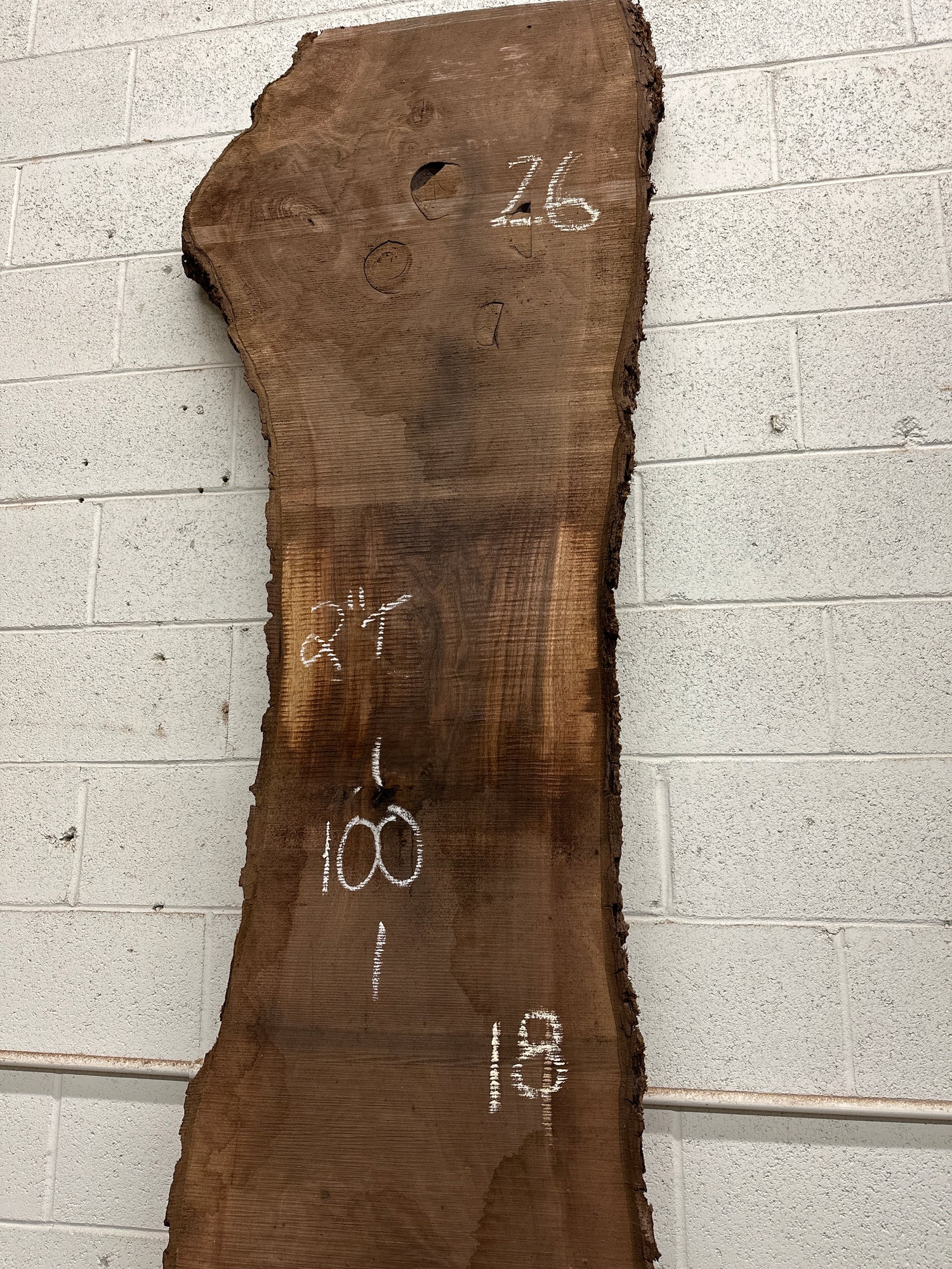 2”Thick - This pieces has 4 nails in circled area, some knots, feather grain pattern and will need to be flattened
