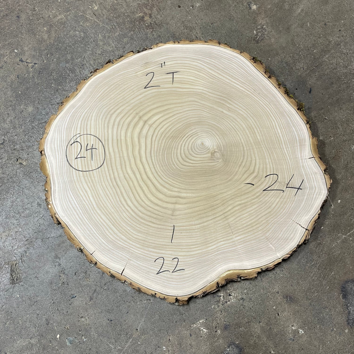 This piece is flattened and sanded to 80 grit, finished dimensions are located on the piece.