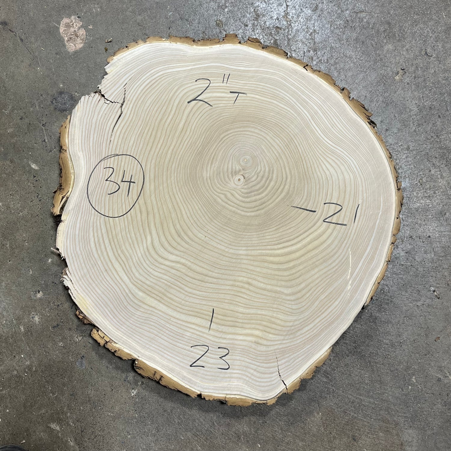 This piece is flattened and sanded to 80 grit, finished dimensions are located on the piece.