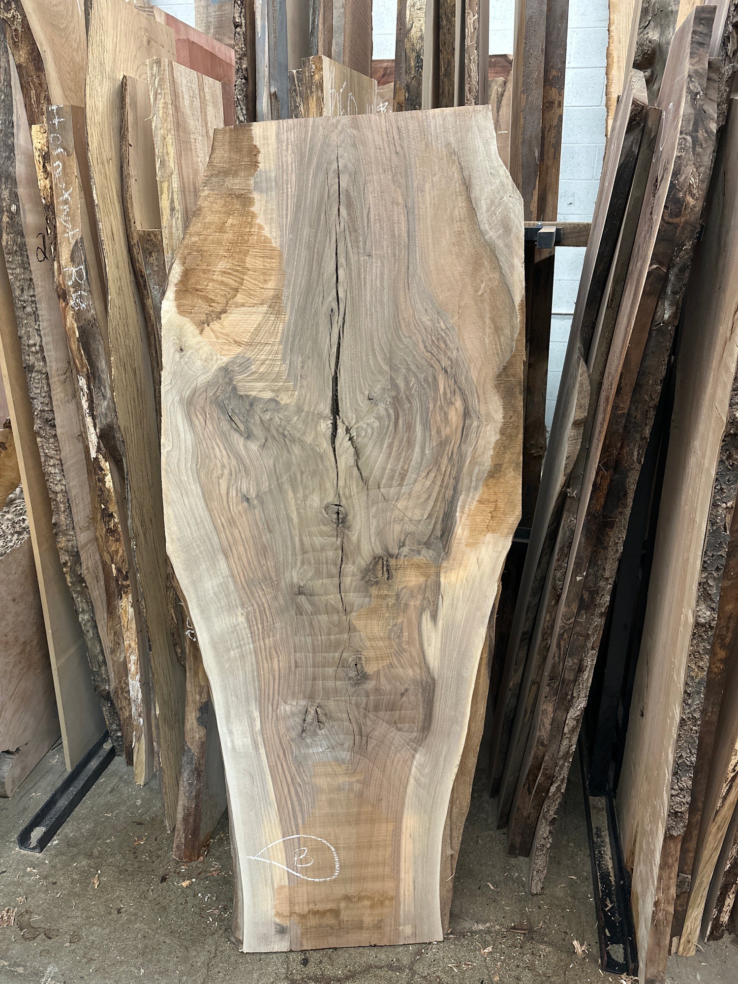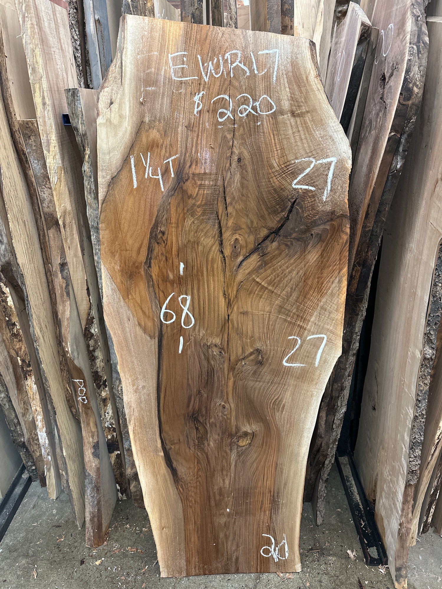1 1/4” thick- some surface cracks and curl are visible