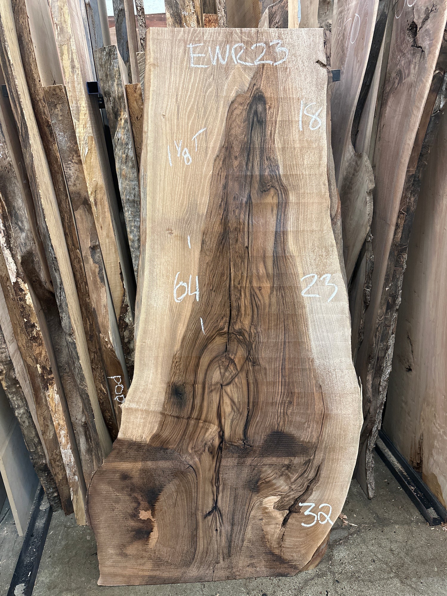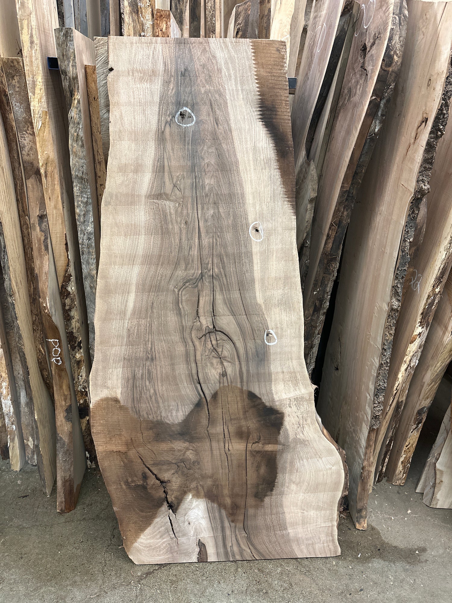 1 1/8@ thick- some surface cracks and curl are visible . Circles represent a previously removed nail which now has some light surface damage