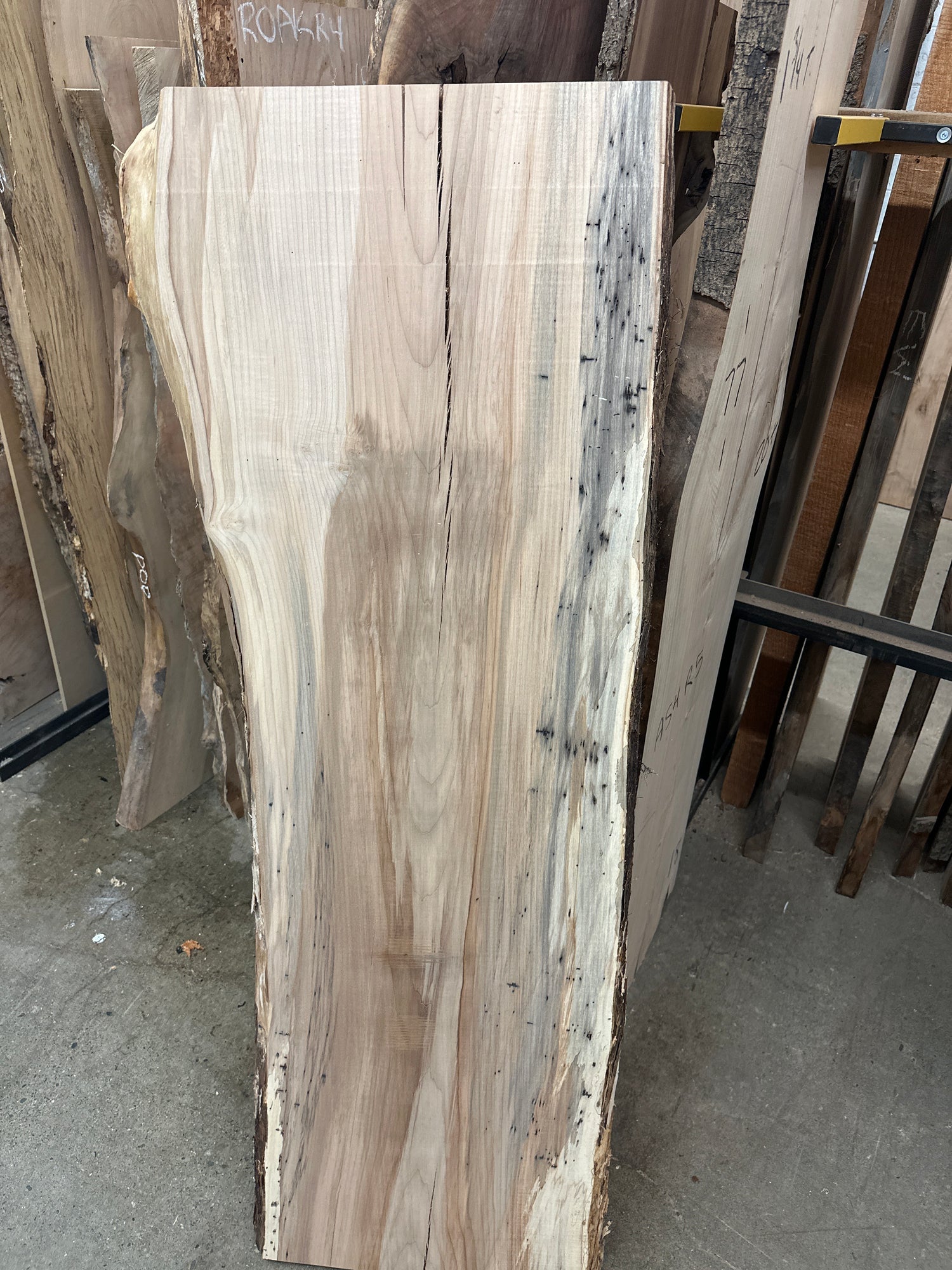 1 3/4” thick - Some spalting and insect holes are visible