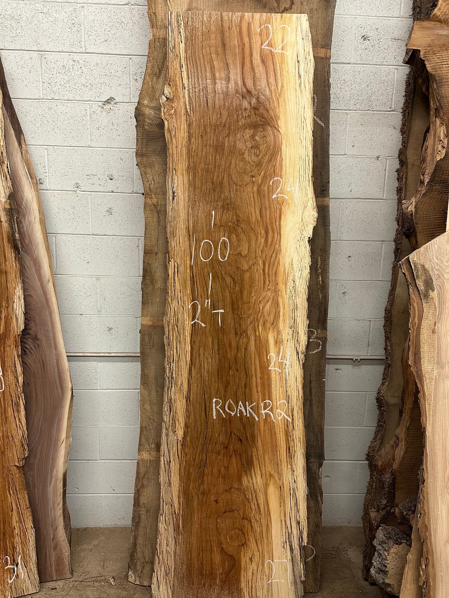2” thick.This has been flattened and ready to go . Some soft spot/rot and crack are visible